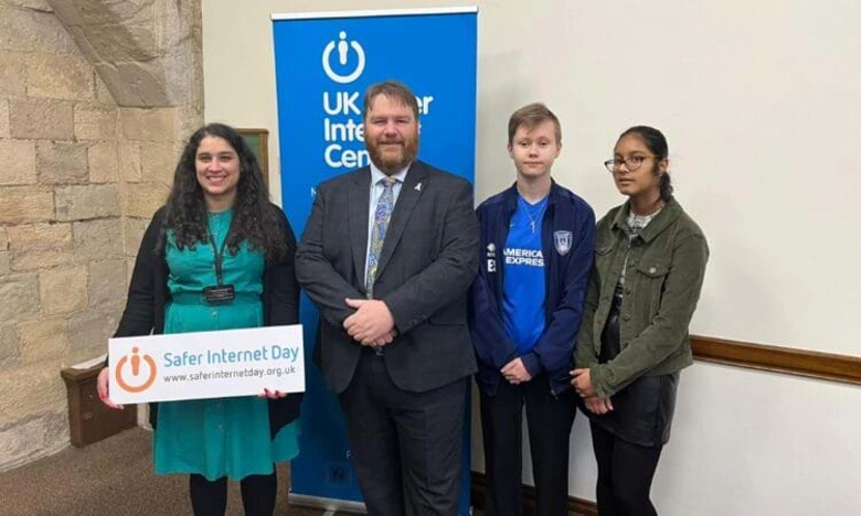 Midlothian MP Owen Thompson, centre, meets the young Digital Leaders at the UK Safer Internet Day 2023 with Childnet’s Danielle Antha, far left.