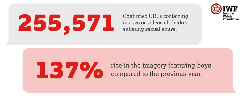 In total in 2022, the IWF confirmed 255,570 URLs contained images or videos of children suffering sexual abuse.